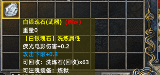 ②“魂石”回收后,可获得道具“洗炼石(回收)”。“洗炼石(回收)”在下次洗炼时会被优先使用。