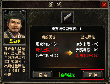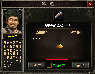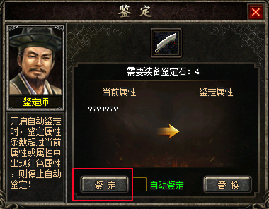 使用“装备鉴定石”鉴定指定装备,每次鉴定会根据装备档次随机获得1-4条附加属性,装备档次越高,可鉴定出的属性上限越高!